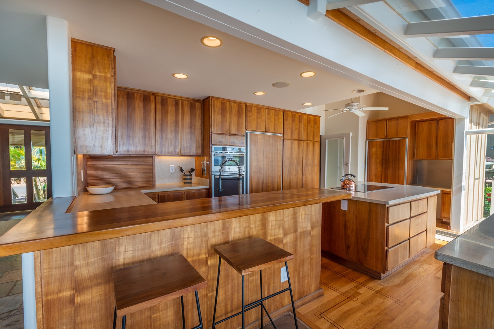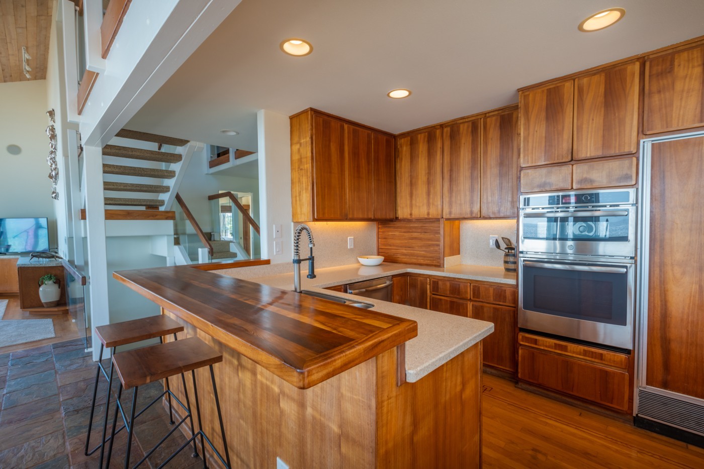 The home has had major renovations in 2024. Renovations included new upper and lower decks and pavers, new roof, new windows, new glass ‘infinity’ deck railings, new Subzero fridge and freezer and new hardwood flooring. New folding deck doors make for true indoor/outdoor island style living. The luxury kitchen with Koa cabinetry is fully equipped with all you will need and more.