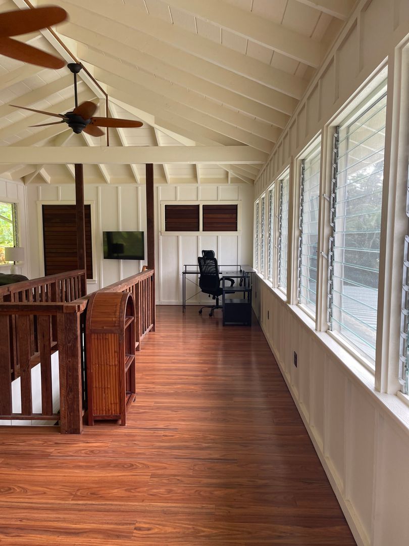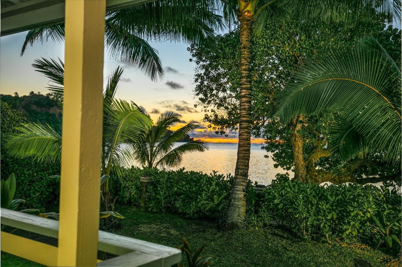 Enjoy incredible ocean views and sunsets from this beach home at the end of Anini Road. The home is fully furnished with 2 bedrooms and 2 bathrooms on the first floor. The primary suite has a queen size bed and the 2nd bedroom has a king size bed. There is a large loft with a queen size bed, sitting area with sofa and TV and an office area. The home has large windows with gorgeous ocean views and breezes. Ceiling fans in all rooms as well as a lava rock wood burning fireplace in the living room. The home has a covered lanai on the entire front of the house and a private covered lanai on the side. There is also a private outdoor shower. Literally walk across the street to a peaceful white sand beach!