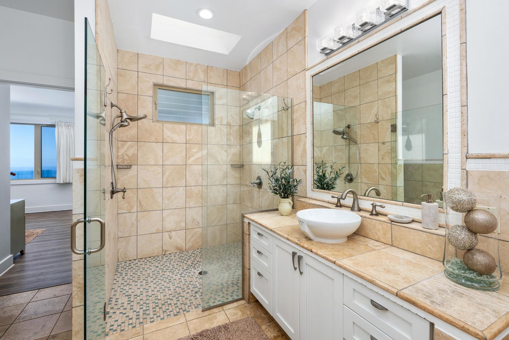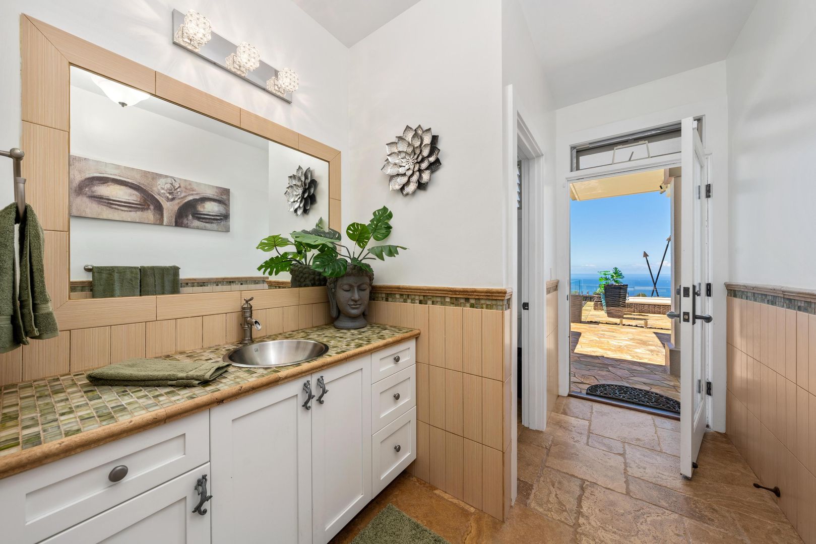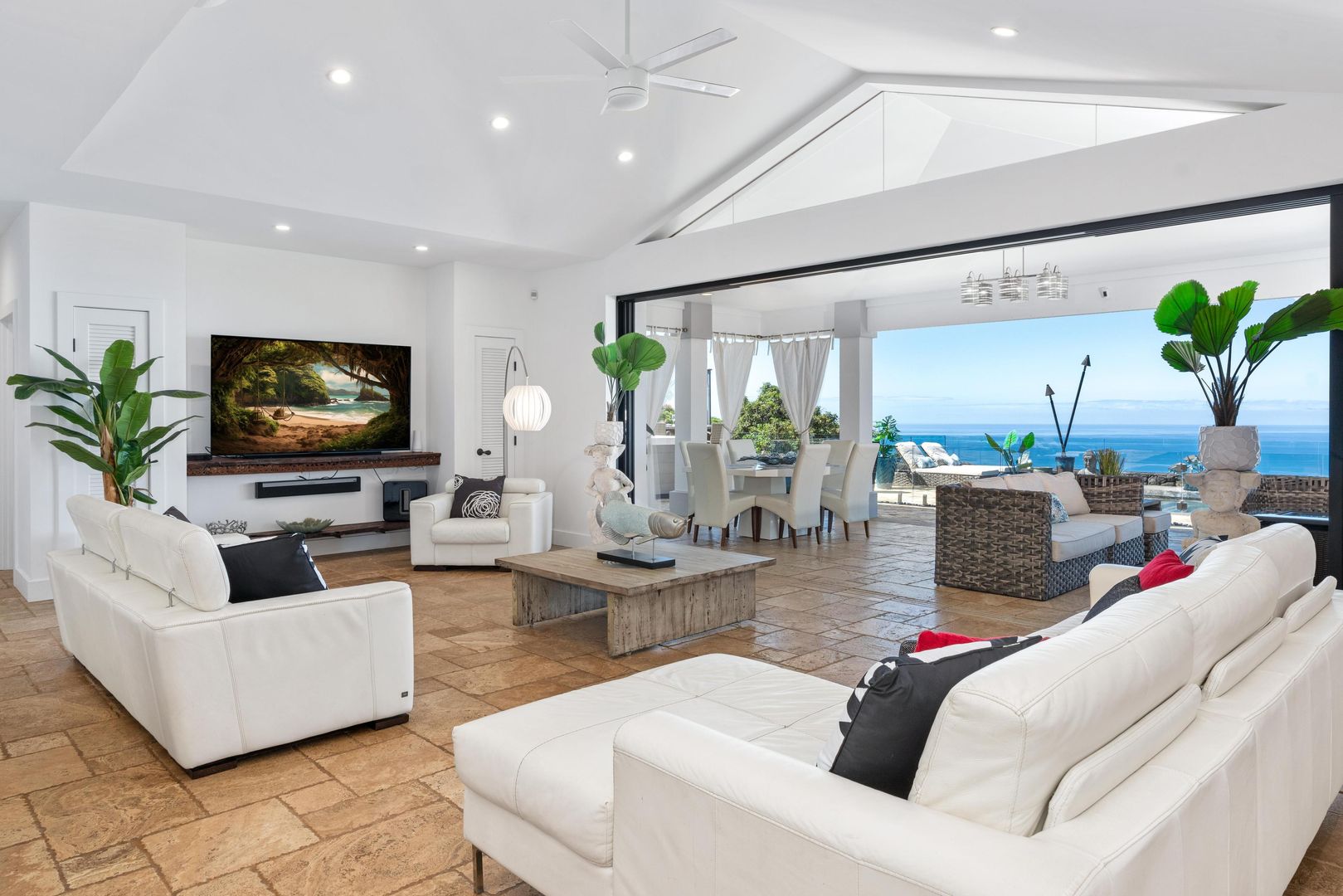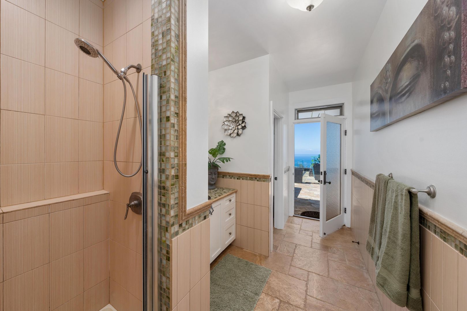 The home includes a gourmet kitchen with Hestan appliances and quartz countertops. There is an expansive lanai with outdoor furniture perfect for entertaining with a heated salt water pool and hot tub, all with gorgeous ocean views! There is a Koi Pond in the front of the home.