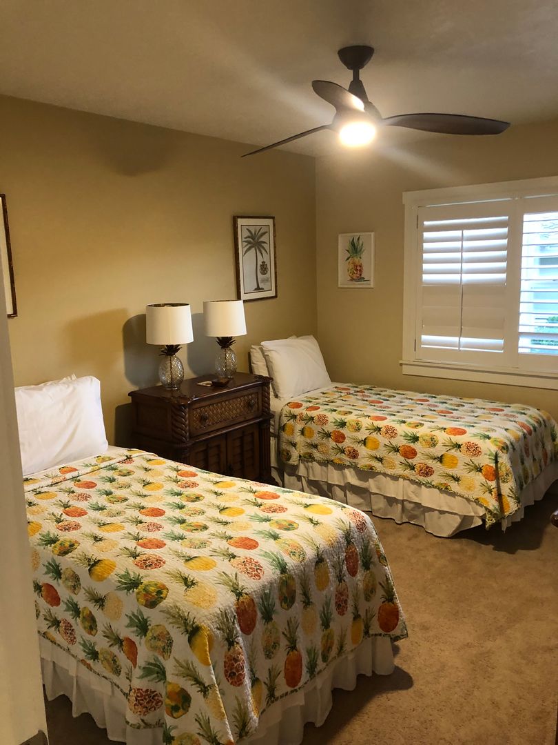 Fully furnished 3 bedroom 3 bath condo at The Plantation at Princeville. Beautifully decorated and fully furnished. The kitchen is is stocked with dishes, utensils and cookware. There is a king size bed in the primary suite, a queen size bed in the 2nd bedroom and twin beds in the 3rd bedroom. The primary suite and second bedroom have AC. Located in the heart of Princeville, you will be close to the Princeville Shopping Center, Anini Beach and just a short drive to Hanalei for more shopping, dining and beaches. There is a one car garage and one parking space. The condo is ready for move in December 1, 2025!
