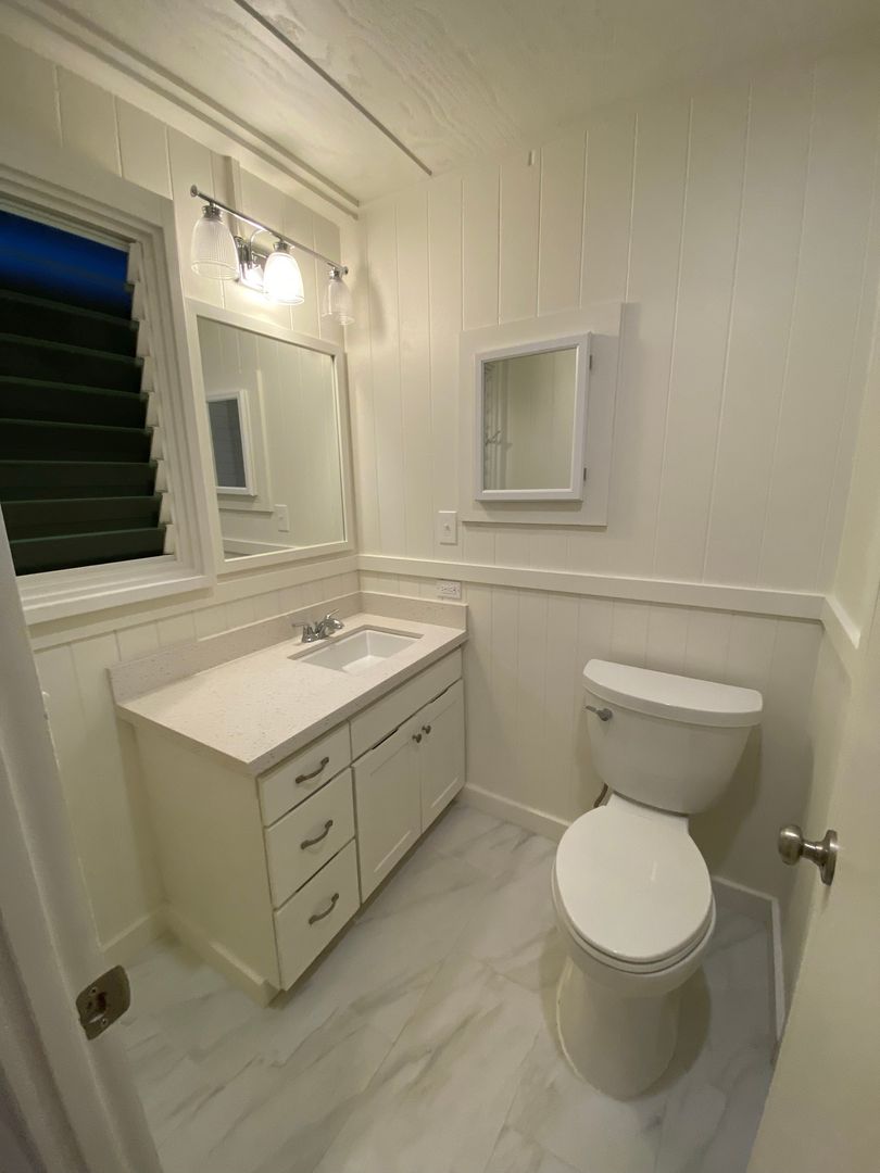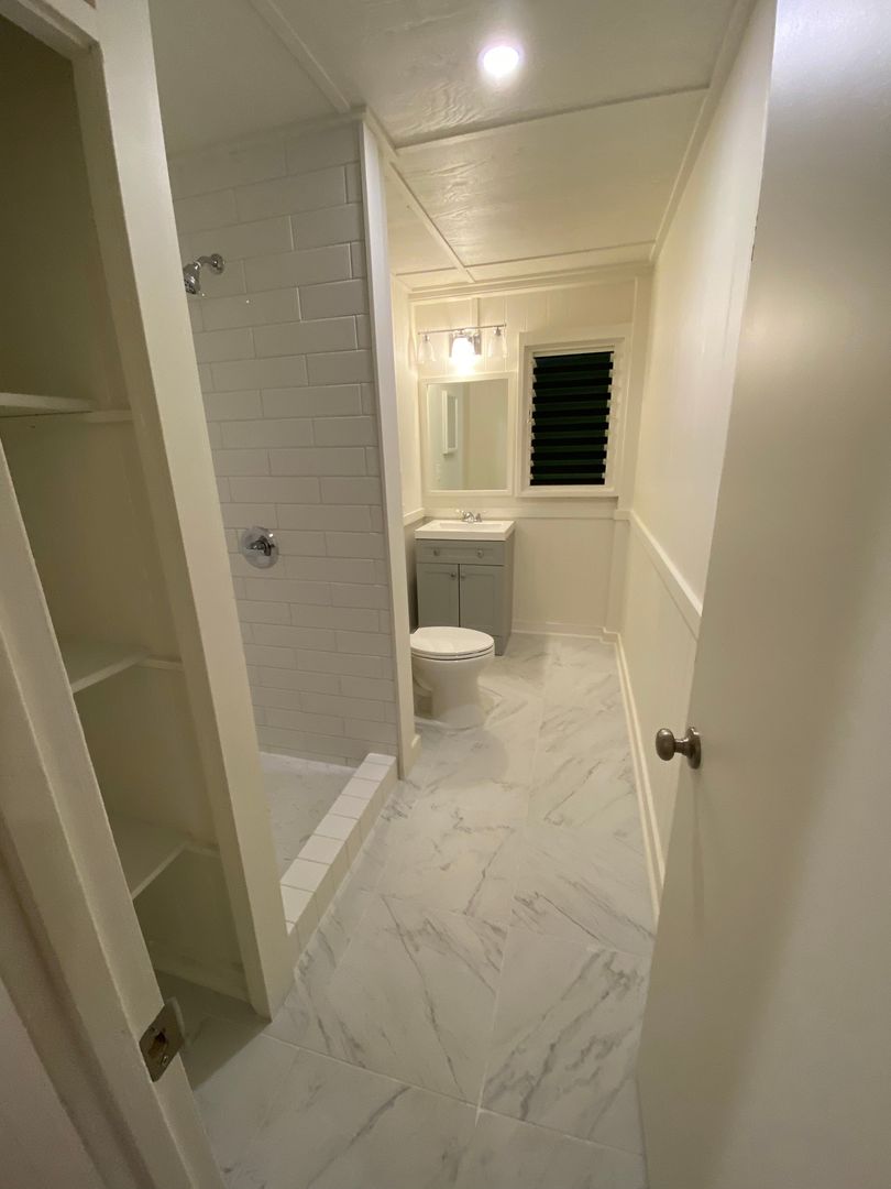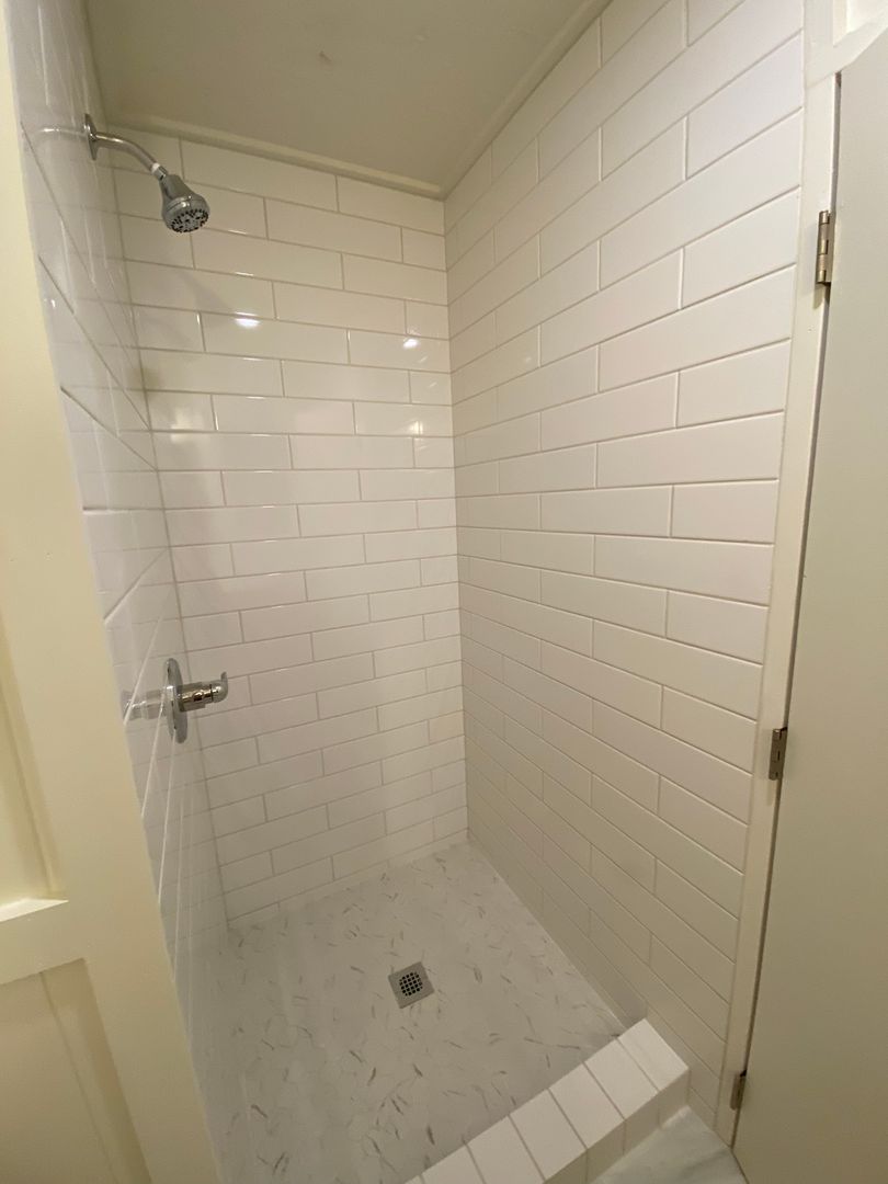 Updated bathrooms include new tile floors, vanities and subway tile showers